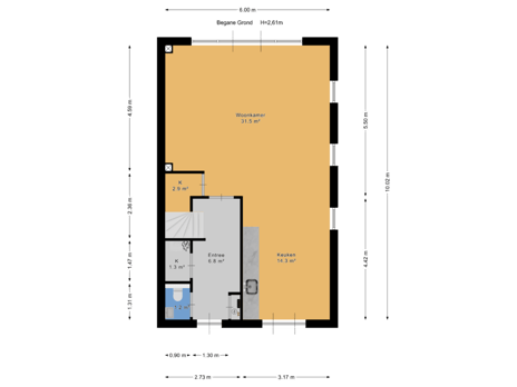 - 77 m² (11,00 meter diep en 7,00 meter breed)