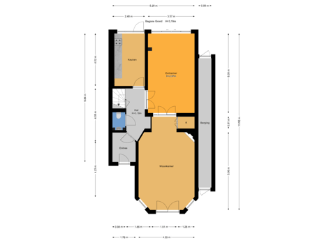 - 212 m² (29,00 meter diep en 7,30 meter breed)