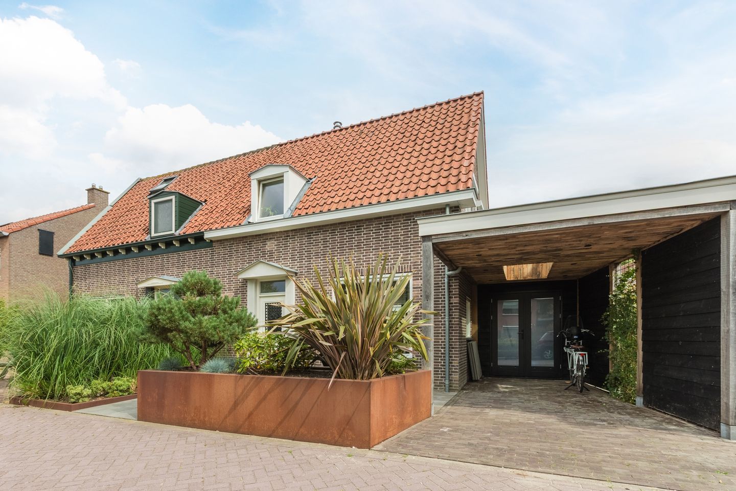 Gunstig hierbij is dat je in de voortuin je auto kunt parkeren onder je eigen carport.