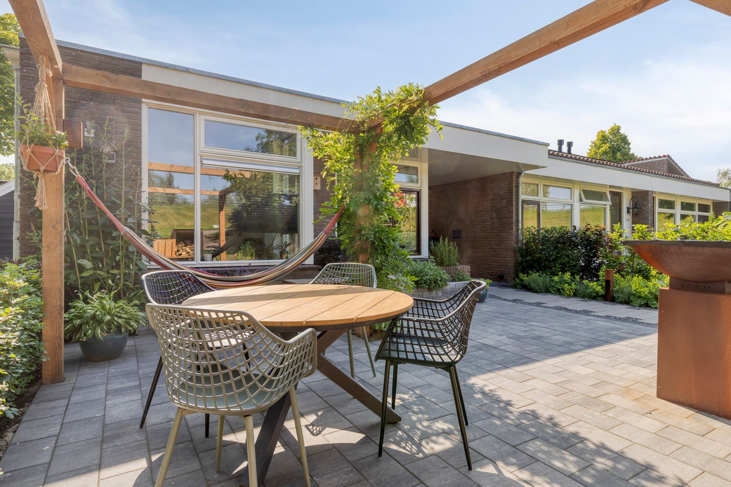 Moderne, onderhoudsvriendelijke en zonnige (W) voortuin voorzien van terras en sfeervolle pergola. Hier kun je genieten van de ruimte en vrijheid buiten!