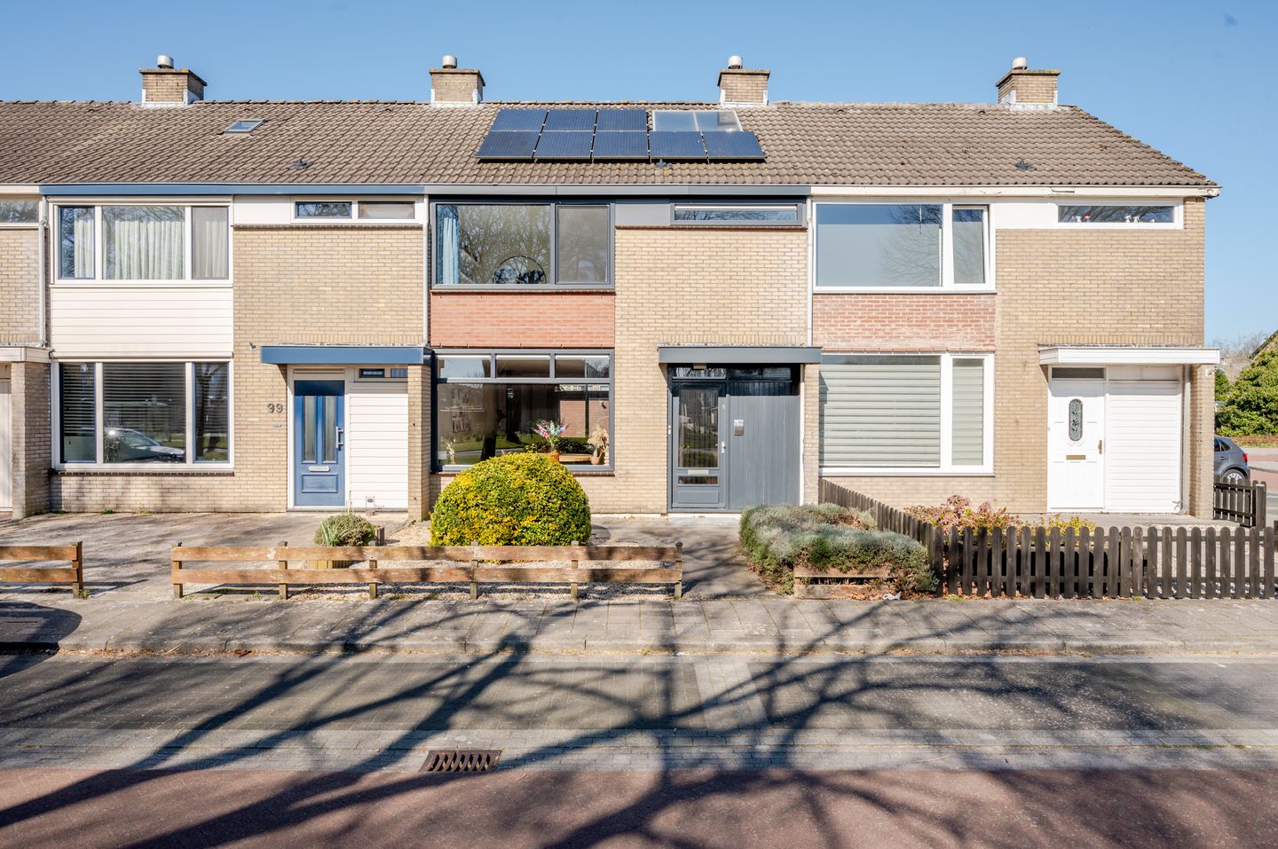De voortuin is gelegen op het zuiden. Voor de deur zijn er openbare parkeerplaatsen, handig als u gasten over de vloer krijgt.