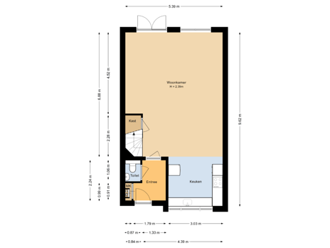 Entree/hal met de meterkast, toiletruimte (2025) met fonteintje en toegang naar de woonkamer/keuken. Een heerlijk ruime tuingerichte woonkamer (ca. 36 m²) van maar liefst 5,39 meter breed. Aan de voorzijde bevindt zich de keurige inbouwkeuken in L-opstelling, welke voorzien is van de volgende apparatuur; koelkast, vaatwasser, combi-oven, 4-pits elektrische kookplaat en een afzuigkap. Ruime opstelmogelijkheden voor een eettafel, waar u heerlijk met vrienden en familie kunt dineren. De begane grond is voorzien van een fraaie laminaatvloer.