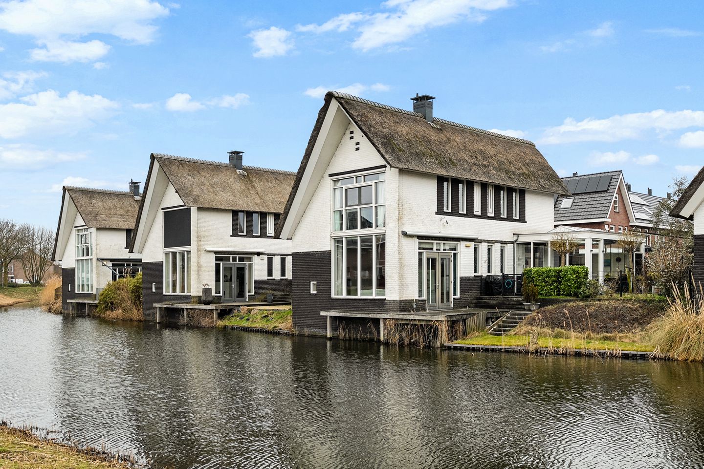 Vrijstaand wonen aan het water met een karakteristieke rieten kap, een royale leefruimte, serre en prachtig uitzicht over het water. Deze unieke woning combineert sfeer, ruimte en licht op een rustige en groene locatie. Dankzij de grote raampartijen, de open leefruimte en de ligging direct aan het water geniet u hier elke dag van een bijzonder woongevoel.