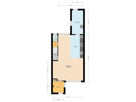 - 53 m² (10,19 meter diep en 6,37 meter breed)