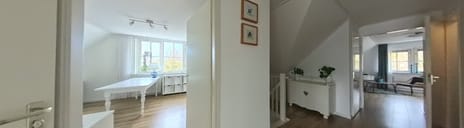 Daarnaast biedt de hal via een vlizotrap toegang tot de praktische vliering.