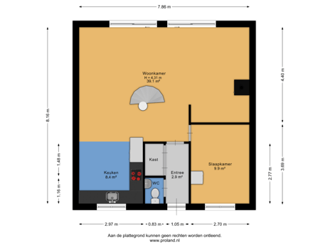 - 72 m² (9,00 meter diep en 8,00 meter breed)