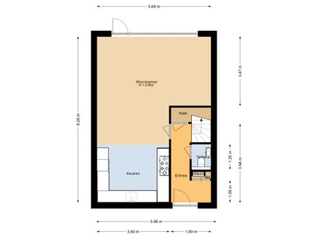 - 85 m² (17,00 meter diep en 5,00 meter breed)