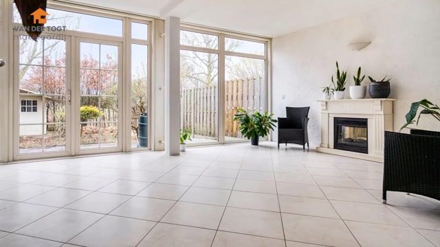 De ruime woonkamer vormt het hart van de woning en biedt dankzij de grote raampartijen een prettige lichtinval. Er is voldoende ruimte voor zowel een royale zithoek als een eethoek. Vanuit de woonkamer heeft u toegang tot de achtertuin.