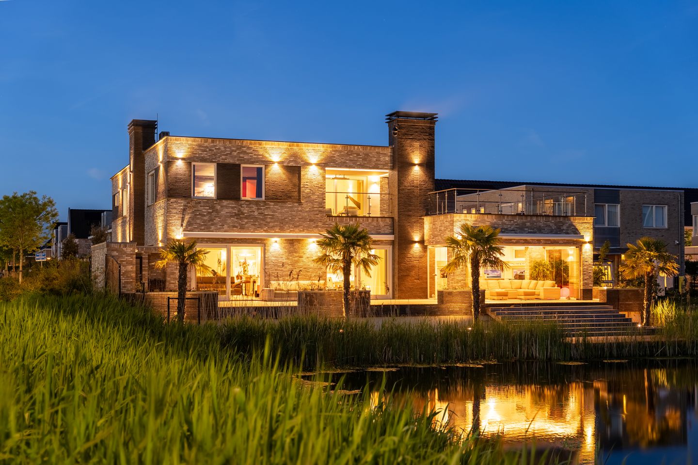 De villa ligt aan het water en beschikt over meerdere terrassen, een aanlegsteiger en een royale tuin met palmbomen. De serre met wegklapbare glazen schuifwanden en groot daklicht, zorgt voor een vloeiende overgang van binnen naar buiten leven - hier ervaar je elk seizoen op zijn best. De aanwezige houthaard en dubbele infrarood verwarming maken dit vertrek ook in de koudere maanden tot een aangenaam verblijf.