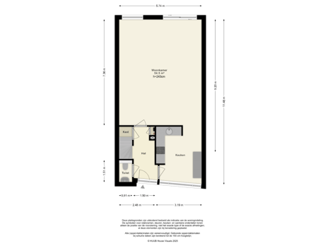 - 90 m² (15,00 meter diep en 6,00 meter breed)