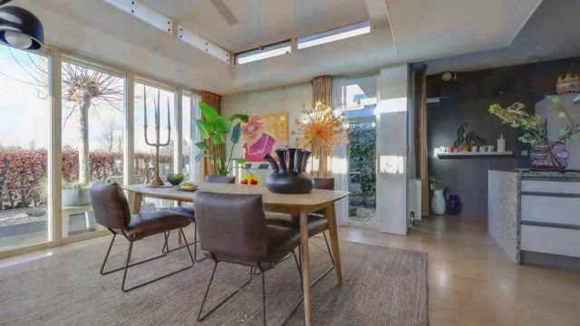 Kenmerkend voor deze woning zijn de grote raampartijen met veel lichtinval. Dankzij de grote puien en bovenlichten is dit een uitzonderlijk lichte woning. Al met al een woning met unieke architectuur voor wie kwaliteit en stijl weet te waarderen.