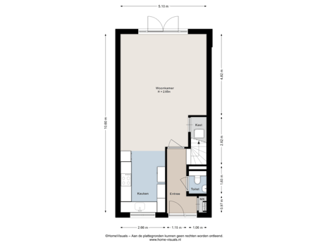 - 44 m² (8,50 meter diep en 5,15 meter breed)