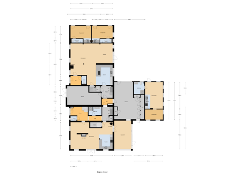 Begane grond; royale hal met vide, toiletruimte, sfeervolle woonkamer met openhaardpartij, openslaande deuren naar een riant terras met uitzicht over de gehele tuin, open keuken met diverse inbouwapparatuur, en een sfeervolle palletkachel voor extra snel warmtecomfort. De woonkamer is uitgerust met een pvc-vloer. Vanuit de keuken is er een toegang middels openslaande deuren naar de serre die ingericht is als eetkamer. De serre is uitgerust met dubbele kunststof schuifpuien naar het terras aan de zijkant. Vanuit de hal is de bijkeuken bereikbaar met aansluitpunten ten behoeve van witgoed apparatuur en een vaste kast, badkamer met inloopdouche en een dubbele wastafel, bereikbare droge kelder. Verzorgde afgesloten tuin met veel privacy, zonneterrassen, royaal gazon met diverse bloeiende borders en struiken.