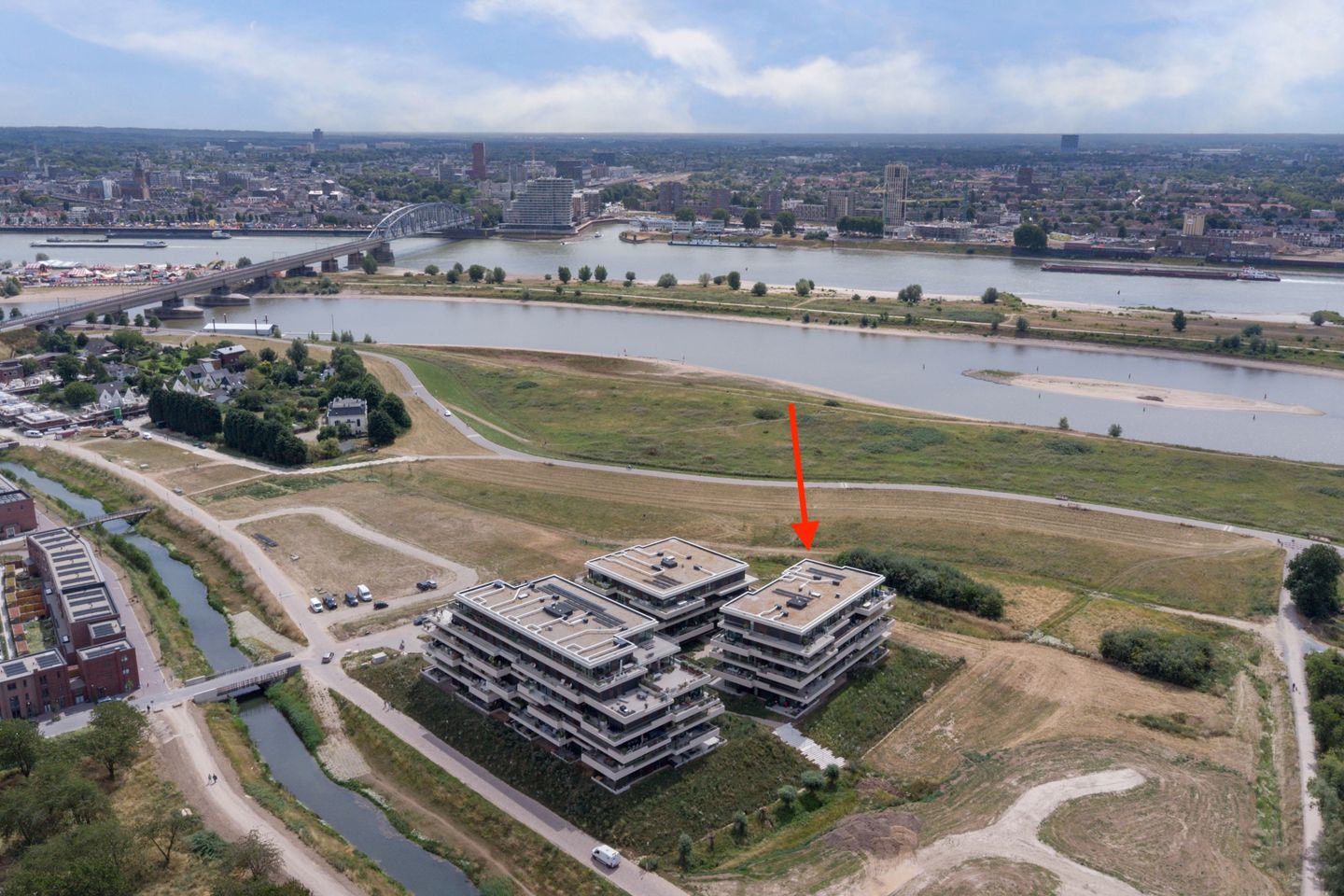 + Dicht bij de Spiegelwaal, uiterwaarden en binnenstad van Nijmegen