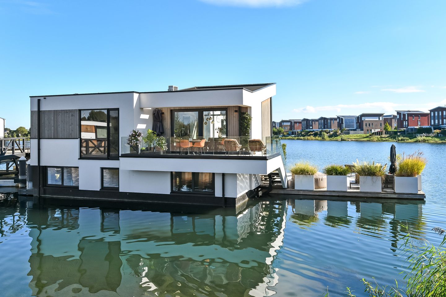 - duurzaam betonnen drijvend terras van ca. € 45.000,- meerprijs (t.o.v. een standaard houten terras)