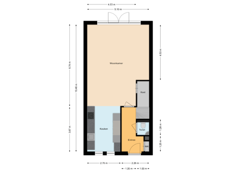- 35 m² (7,00 meter diep en 5,00 meter breed)