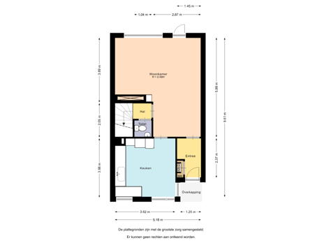 - 57 m² (9,96 meter diep en 5,72 meter breed)