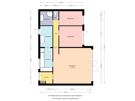 - 67 m² (6,10 meter diep en 11,00 meter breed)