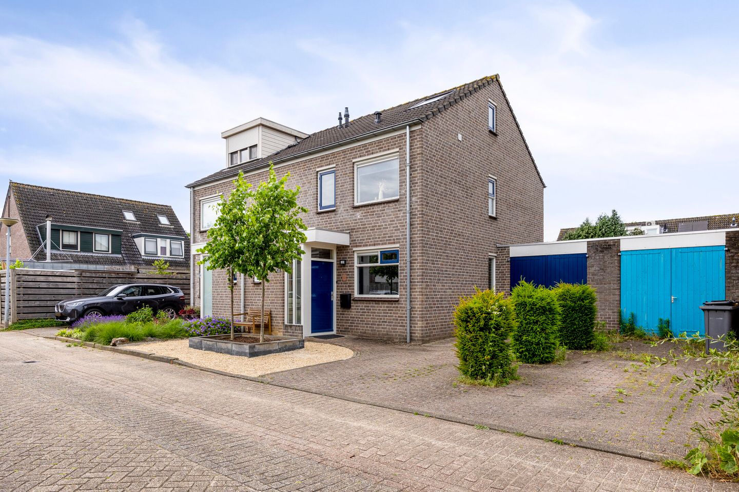 Ruime voortuin met oprit en toegang tot de garage. De diepe achtertuin ligt op het noordwesten en biedt volop zon en privacy. Ideaal voor tuinliefhebbers of gezinnen met kinderen.