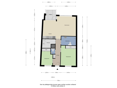 De entree van het complex ligt naast de toegang tot de parkeerkelder, tegenover State of Art. Via de gezamenlijke entree met videofooninstallatie kom je in de centrale hal, vanwaar je met de lift of trap het appartement op de tweede verdieping bereikt.