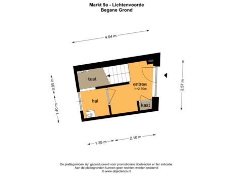 Eigen entree met trapopgang, hal met doorloop naar de winkelruimte, kastruimte en C.V.-opstelling.