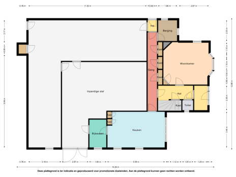 Stal, afmeting ca. 6.10/11.50 x 8.80/12.75 m