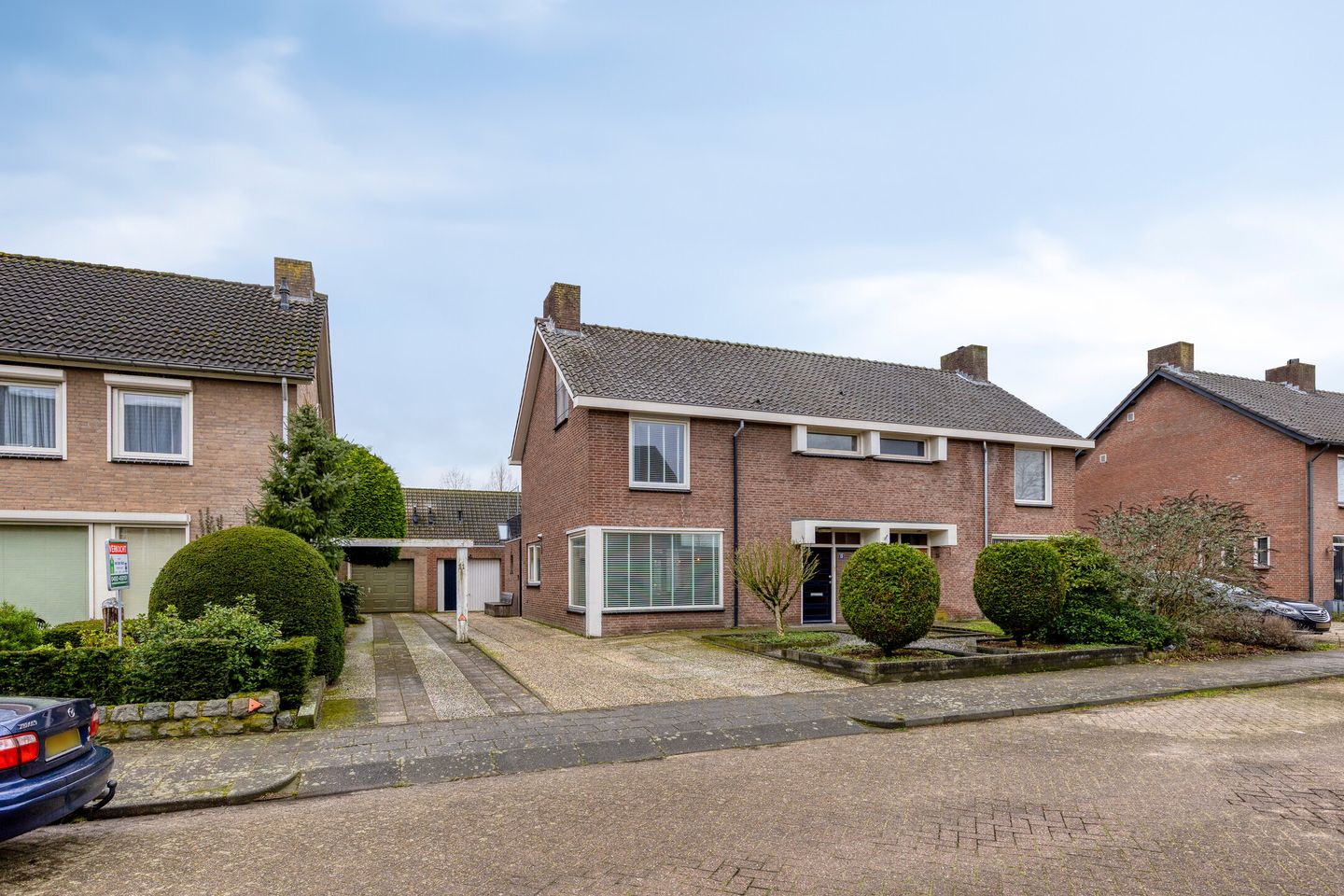 De voortuin is verzorgd aangelegd met vaste beplanting en een ruime oprit met parkeergelegenheid voor meerdere auto’s.