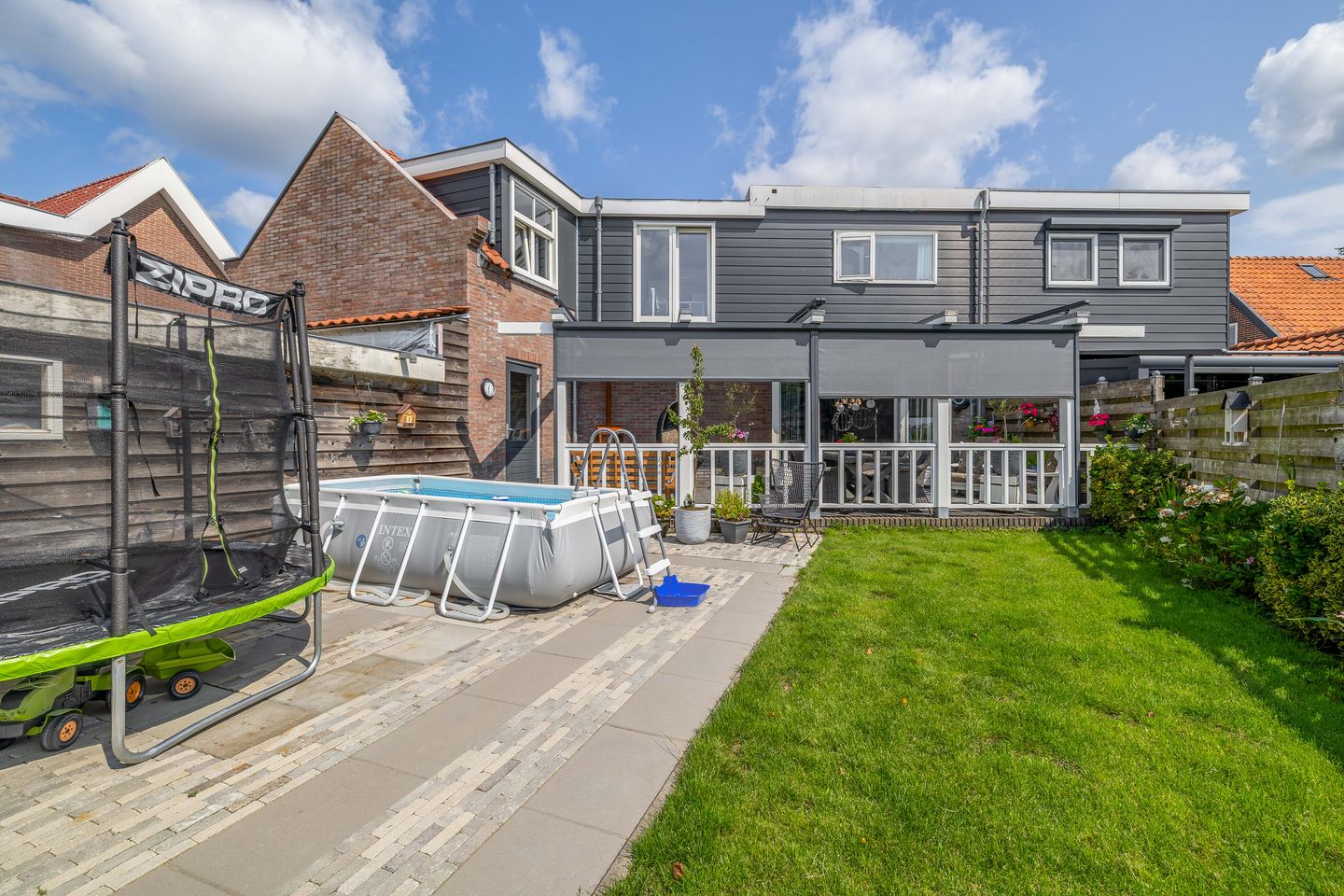 The house is situated on a beautiful plot with both a deep front garden with an electric gate and a spacious, sunny, south-facing back garden. From the garden, you have unobstructed views of the expansive meadows – a rare luxury. The generous veranda, thanks to the screens and the electrically lockable roof, is ideal for relaxing outdoor living, regardless of the season. The garage is accessible from the garden and has an electric door. The garage is also accessible from the front and from the hallway.