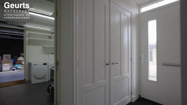 Entree met meterkast, lift, trap en twee garages, beide voorzien van een elektrische deur. In één van de garages bevindt zich de wasmachineaansluiting, terwijl de andere garage veel opbergruimte biedt.