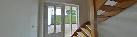 - U komt binnen via een ruime hal met meterkast en trapopgang. Deze ruimte geeft u toegang tot de leefkeuken en woonkamer.