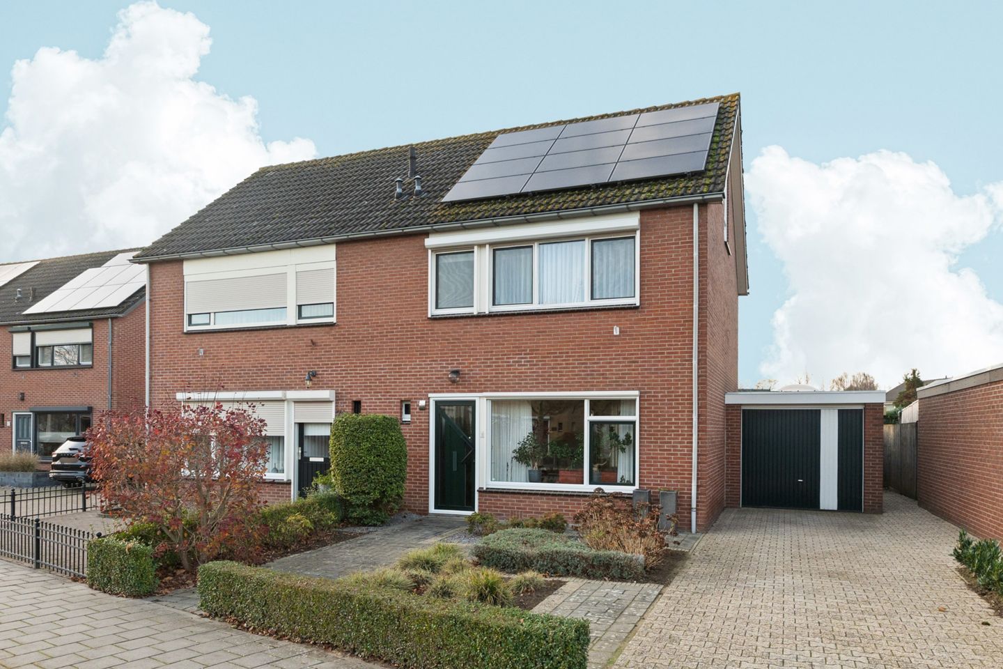 Buiten: Aan de voorzijde ligt een royale voortuin met een eigen oprit, wat zorgt voor een prettige afstand tot de straat en een rustige binnenkomst. De achtertuin is verzorgd aangelegd en voelt groen en beschut aan. Dankzij de ligging op het noordwesten kun je hier op verschillende momenten van de dag fijn buiten zitten.