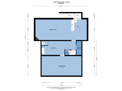 Souterrain: Hal met berging, toilet en wasmachine- en droger aansluiting (op hoogte). Ontspanruimte met bar met koelkast en wasbak en tuindeur. Fitnessruimte.