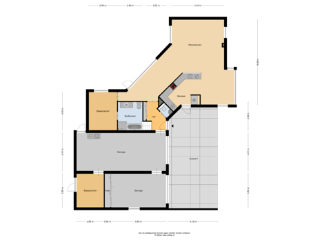Garage: 4 bij ca. 10 meter en 3,5 bij ca. 6,5 meter. Met elektrische roldeuren met afstandsbediening.