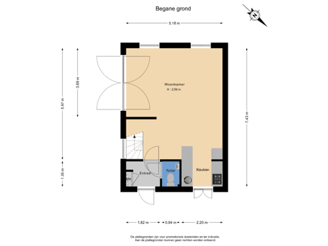 - 68 m² (12,00 meter diep en 5,69 meter breed)