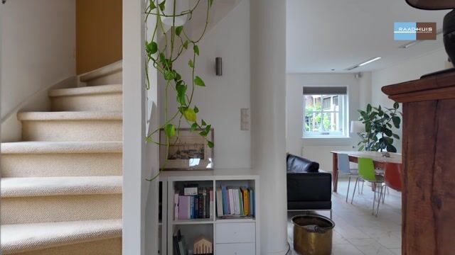 Voordeur aan de rechterzijde van het huis. Via de compacte hal met meterkast en toegang tot de wc kom je in de ruime woonkamer. Wat opvalt is dat het licht werkelijk van alle kanten binnenkomt. Op de vloer liggen marmeren tegels voorzien van vloerverwarming. Maar er is ook een radiator voor snelle warmte. De compacte keuken met houten bladen ligt aan de gezellige tuinzijde. Koken doe je op de inductieplaat uit 2023. Er is hier ook nog een dubbele tuindeur voor nog meer verbinding tussen huis en tuin.