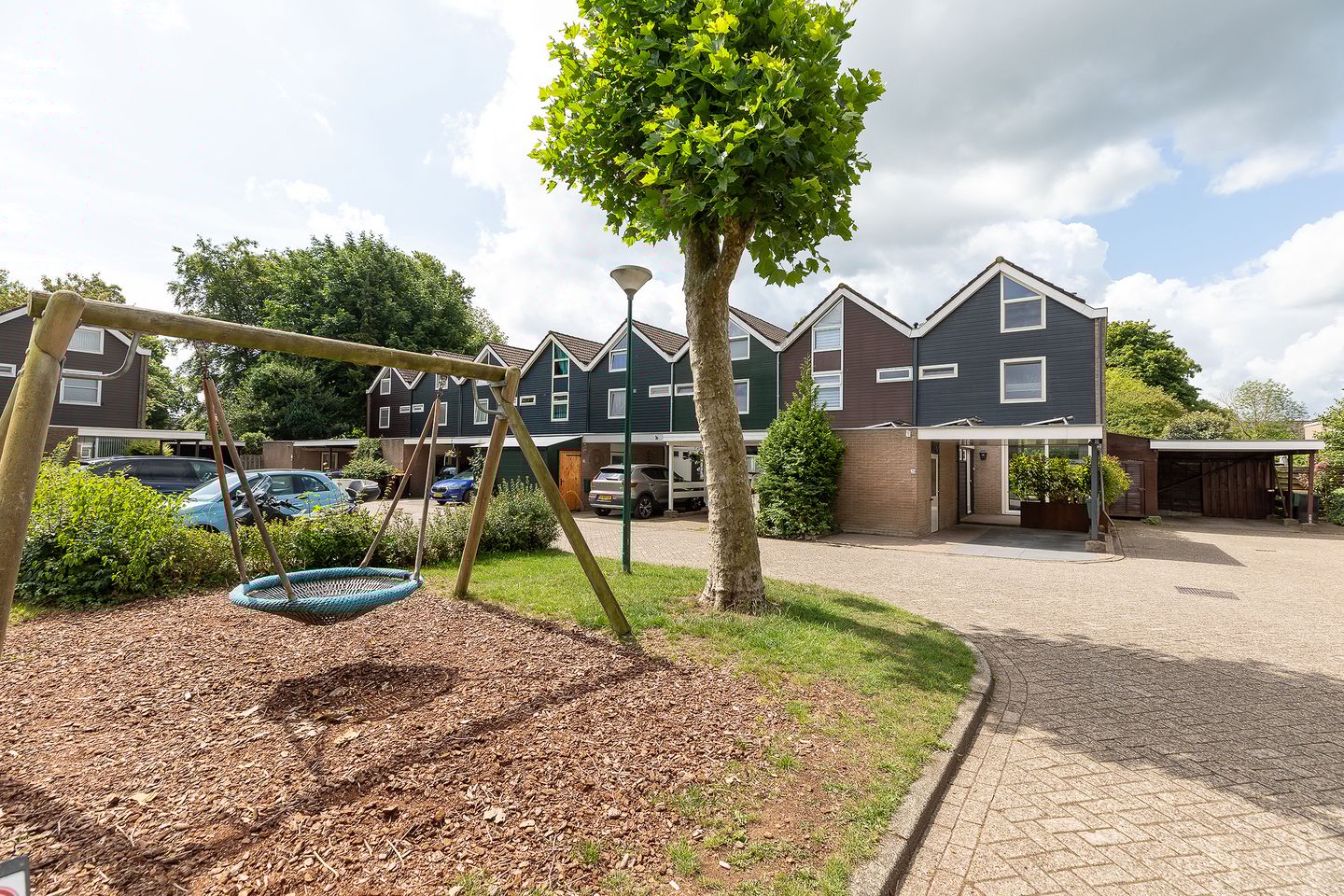 Er is voldoende openbare parkeergelegenheid aan het woonerf.