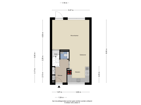 - 60 m² (10,00 meter diep en 6,00 meter breed)