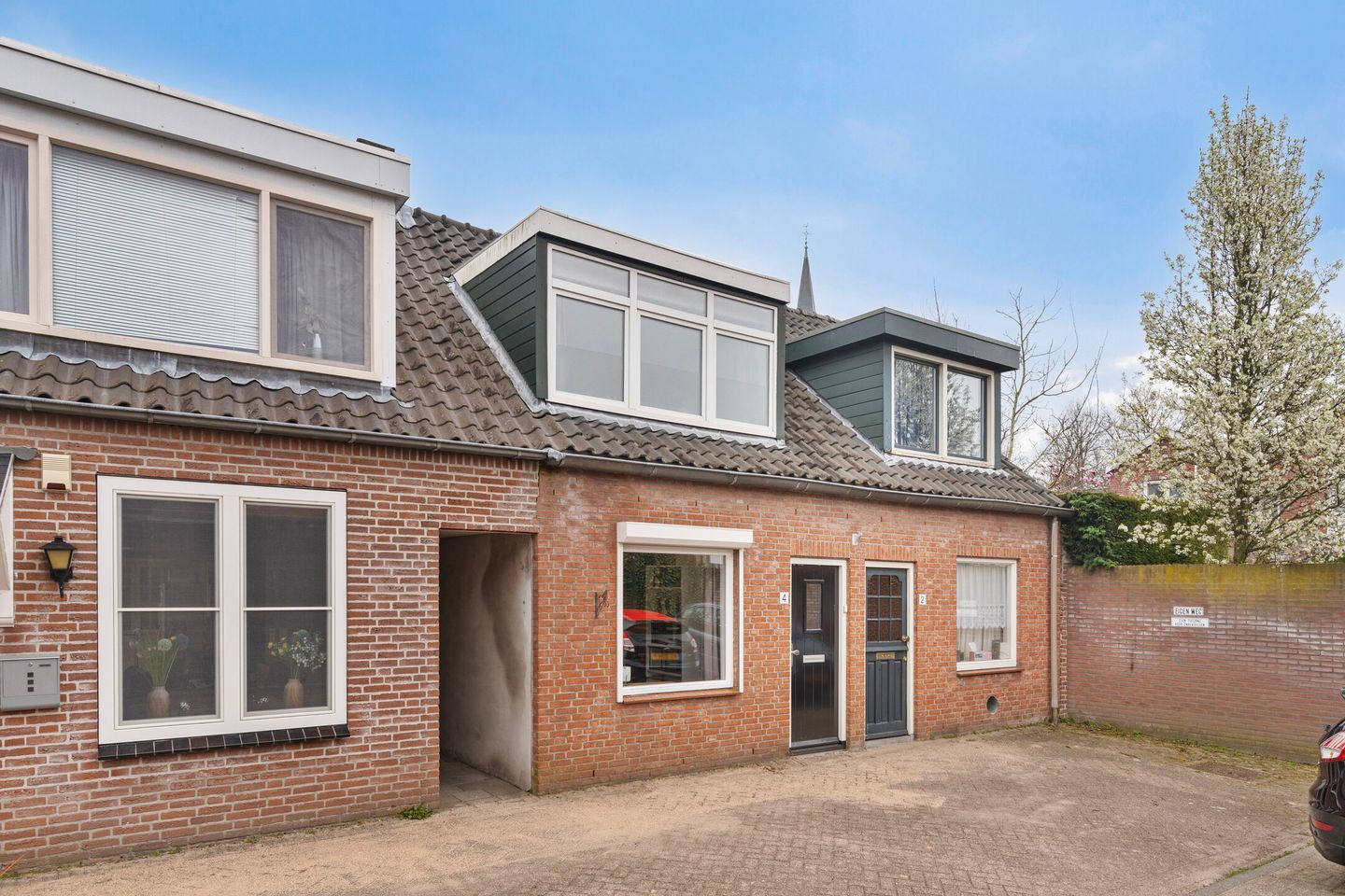 De woning heeft aan de zijkant een achterom (hier mogen beide buren 2 en 6 ook gebruik van maken en de rechterbuur mag achter de achterbouw lopen om door de gang te gaan. Aan de achterzijde een zeer grote en diepe tuin met nieuw houten tuinhuis (afm. ± 1.91 x 2.89 mtr.) met overkapping. De tuin is deels schuin gesitueerd achter de woning zijn er meerdere terrassen, borders met sierplanten.