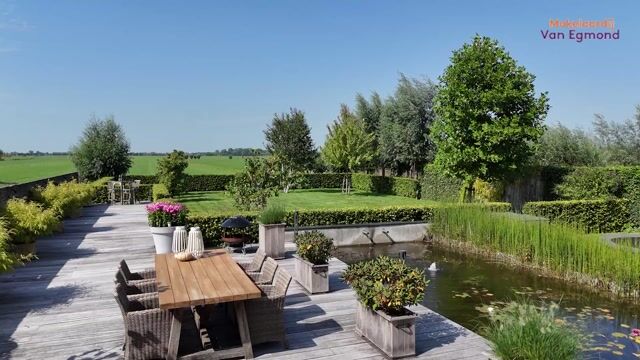 Naast de woning is een grote garage van circa 25 m2 gebouwd. Een praktische plek voor de auto, de scooter, de fietsen, tuingereedschap of de oldtimer. De tuin rondom is tot in detail verzorgd, met tuinmuren, zonnige terrassen van houten vlonderdelen, een prachtige vijver en een royaal gazon. Parkeren doe je op eigen terrein. Kortom; hier woon je modern en hedendaags, in een royaal huis, midden in de polder, met vrij uitzicht over de weilanden en volop ruimte om je heen.