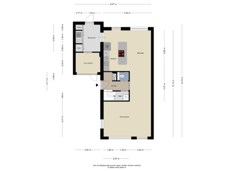 Vanuit de keuken is de bijkeuken bereikbaar, voorzien van een ingebouwde kast met (op werkhoogte) aansluitingen voor wasmachine en droger. Hier is ook een directe doorgang naar de tuin. De bijkeuken én de aangrenzende kamer (momenteel in gebruik als kantoorruimte) zijn voorzien van vloerverwarming die meedraait op de beneden thermostaat, waardoor ook deze ruimtes comfortabel verwarmd worden. De extra kamer aan de voorzijde leent zich uitstekend als kantoor, hobbyruimte of berging, wat jij maar wilt.