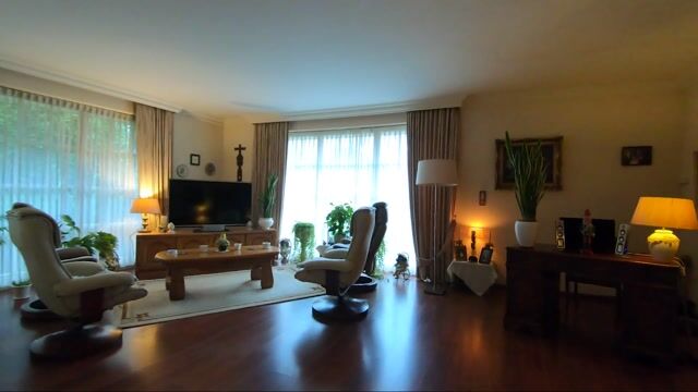 Via de centrale hal met elegante travertinvloer betreed je de woning met een gevoel van stijl en ruimte. Aan de rechterzijde vind je de woonvleugel met een indrukwekkende living van ca. 90 m². Grote raampartijen brengen de tuin overal naar binnen, terwijl de schouw met houthaard zorgt voor een warme en uitnodigende sfeer.