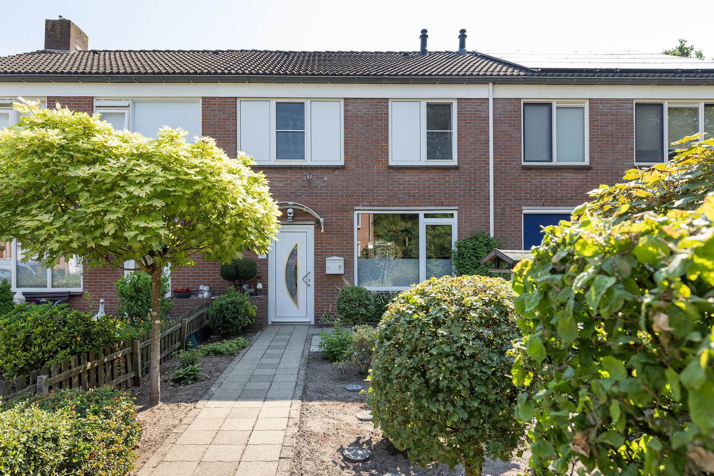 De voorzijde van het woonhuis is te bereiken via een wandelpad, samen met de diepe voortuin zorgt dit er voor dat de privacy goed gewaarborgd wordt.