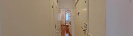 Vervolg uw weg naar de tweede etage en kom meteen bij de voordeur van het appartement. Bij binnenkomst valt direct de nette en lichte hal op, die een warme en uitnodigende indruk van het appartement geeft. Vanuit de hal zijn de twee slaapkamers en de ruime badkamer te bereiken. Verder vindt u hier het toilet en een inpandige berging waar zich de cv opstelling en de aansluitingen voor de wasapparatuur bevinden. Ook is dit een handige ruimte voor het opbergen van huishoudelijke spullen en het drogen van de was. Vervolg uw weg naar de ruime keuken.