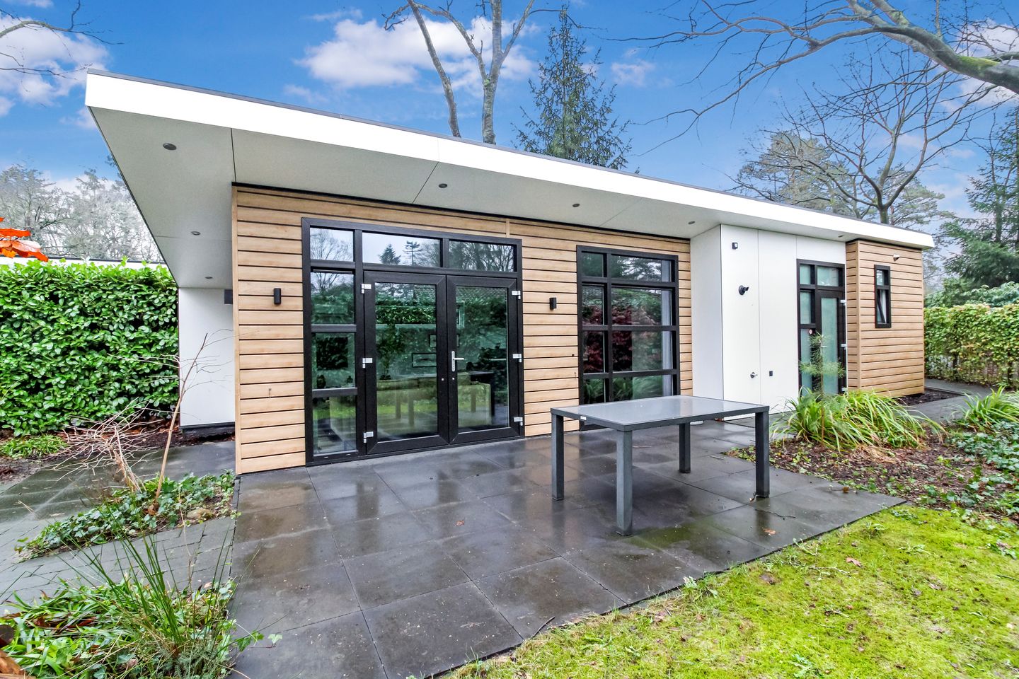 De ruime, goed onderhouden tuin biedt volop mogelijkheden om te ontspannen. Een strak aangelegd terras met comfortabele tuinmeubelen en ligbedden maakt het de ideale plek om te genieten van zonnige dagen, omringd door groen. Daarnaast beschikt de lodge over een praktische berging, perfect voor het opbergen van fietsen, tuinmeubelen of andere benodigdheden. De berging is voorzien van stroomaansluitingen en een oplaadpunt voor elektrische fietsen, zodat je altijd klaar bent voor een mooie fietstocht door de natuur.