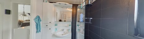 De badkamer is vanuit de hal te bereiken en biedt ruimte aan een ruime inloopdouche, toilet en een wastafelmeubel met vaste kasten. Naast mechanische ventilatie is er dankzij het raam ook daglicht en natuurlijke ventilatie aanwezig. Een heerlijke plek om de dag te beginnen én te eindigen!