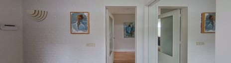 Begane grond: Via de voordeur stapt u binnen in een ruime hal met garderobe en een keurig afgewerkt toilet. De hal geeft direct toegang tot de woonkamer en vormt een prettige binnenkomst, met genoeg ruimte om jassen, tassen en schoenen netjes op te bergen. Een verzorgd en uitnodigend begin van deze bijzondere woning.