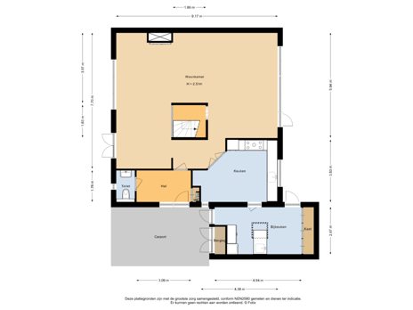 - 109 m² (11,22 meter diep en 9,69 meter breed)