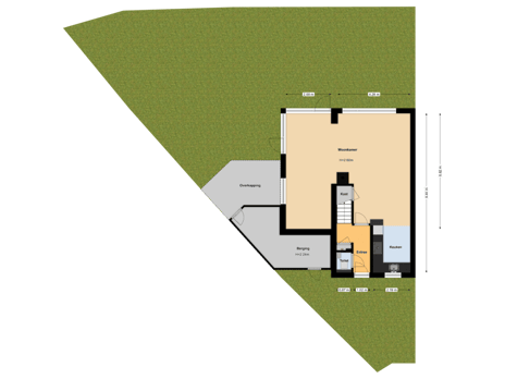 - zij-aanbouw (ca. 7,00 x ca. 3,00) met een schuin dak;