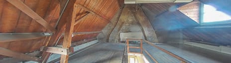 * Grote zolderruimte, ca. 1097 x 633cm. groot en 453cm. hoog.