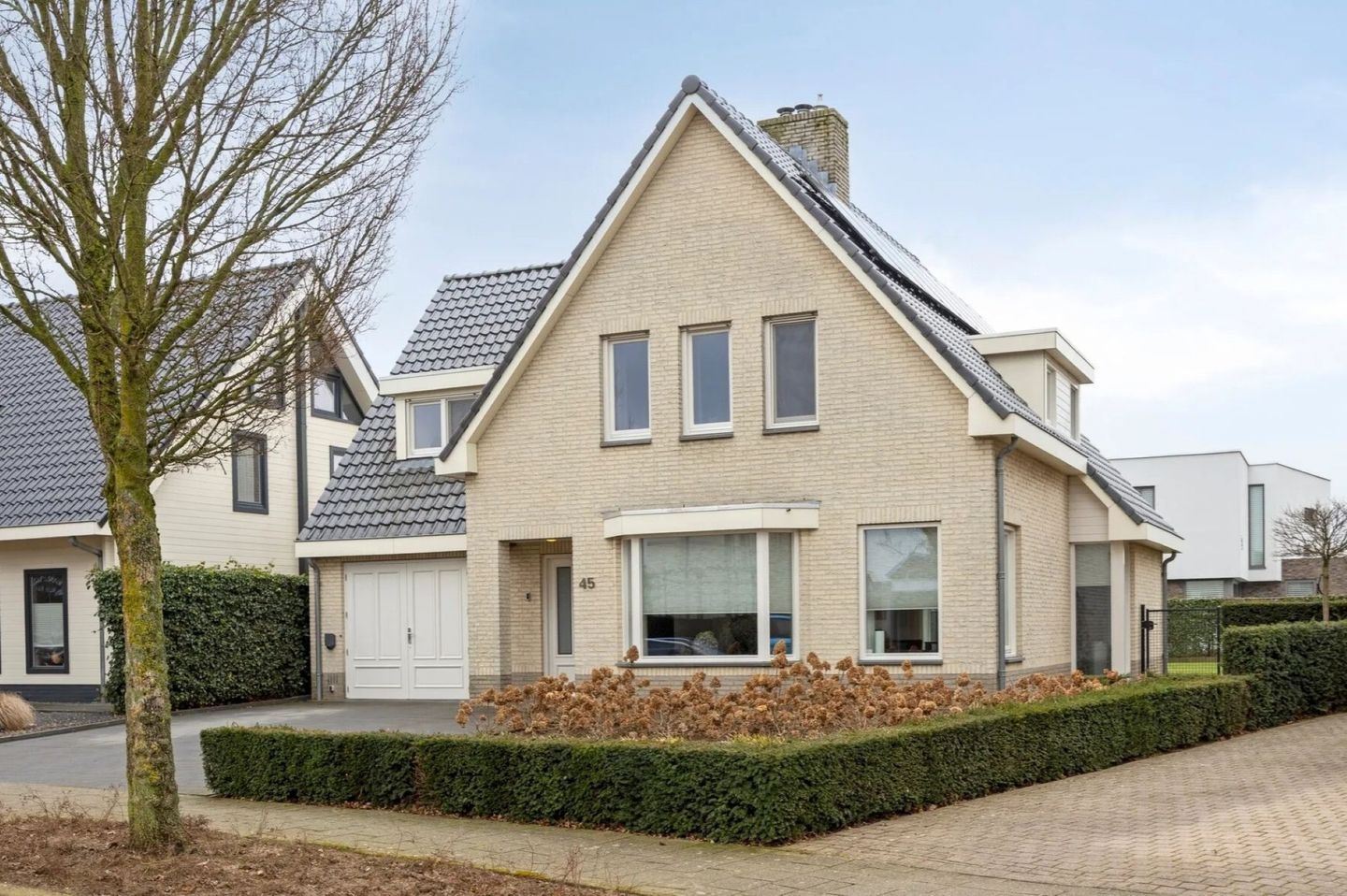 Aan de voorzijde is de oprit verbreed, waardoor u comfortabel twee auto’s op eigen terrein parkeert.